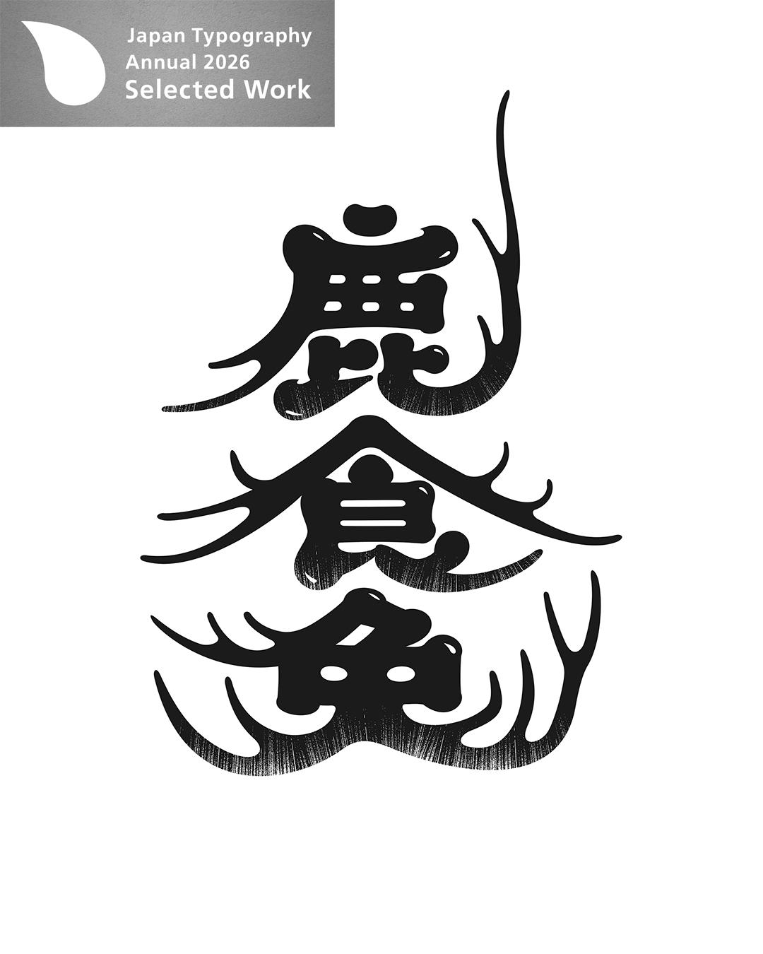 自主制作で創った 「鹿食免」のロゴマークとポスターが 日本タイポグラフィ年鑑2026に入選。 ロコタイプ・シンボルマーク部門で1点、 研究・実験・自主制作部門で連作ポスター2点で入選しました。